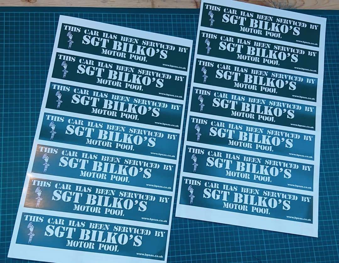 Exclusive Sgt Bilko Motorpool car bumper sticker.